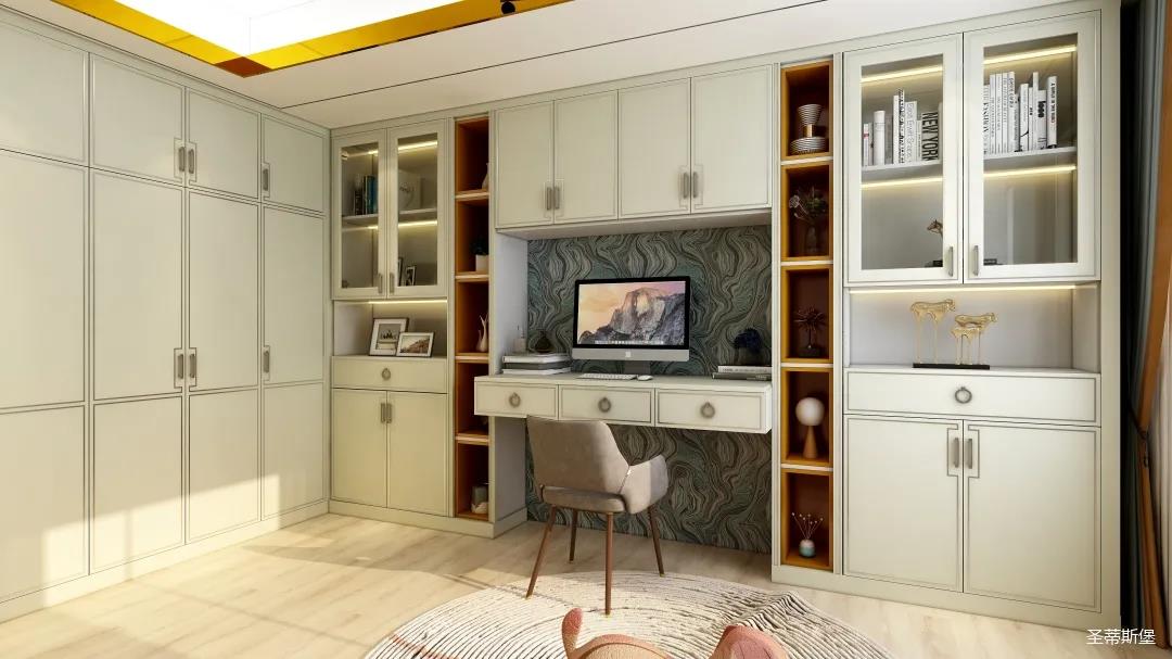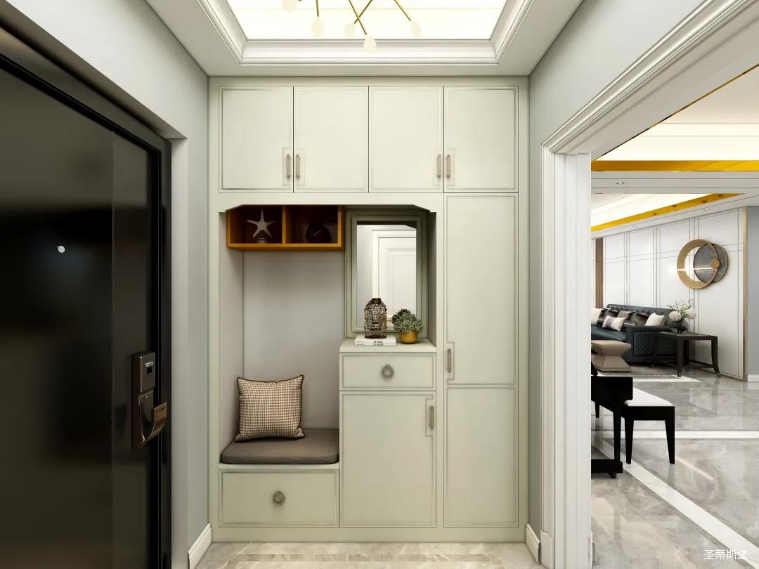 象牙白色调让入室空间散发着温柔的气息,定制玄关柜上轻奢金属线条的加持,洋溢着一种不加雕饰的美感,色泽素雅,纹理精致,于内敛沉静中,感受入户空间的气质。