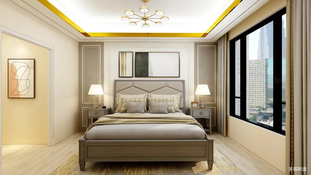 整个空间将对称美进行到底,虽在设计思想上有所保留,但呈现的却是一个拥有秩序感的家,高级的莫兰迪灰与温柔的象牙白居中搭配,优雅又治愈,能在睡眠上带来安稳与舒适的张力。