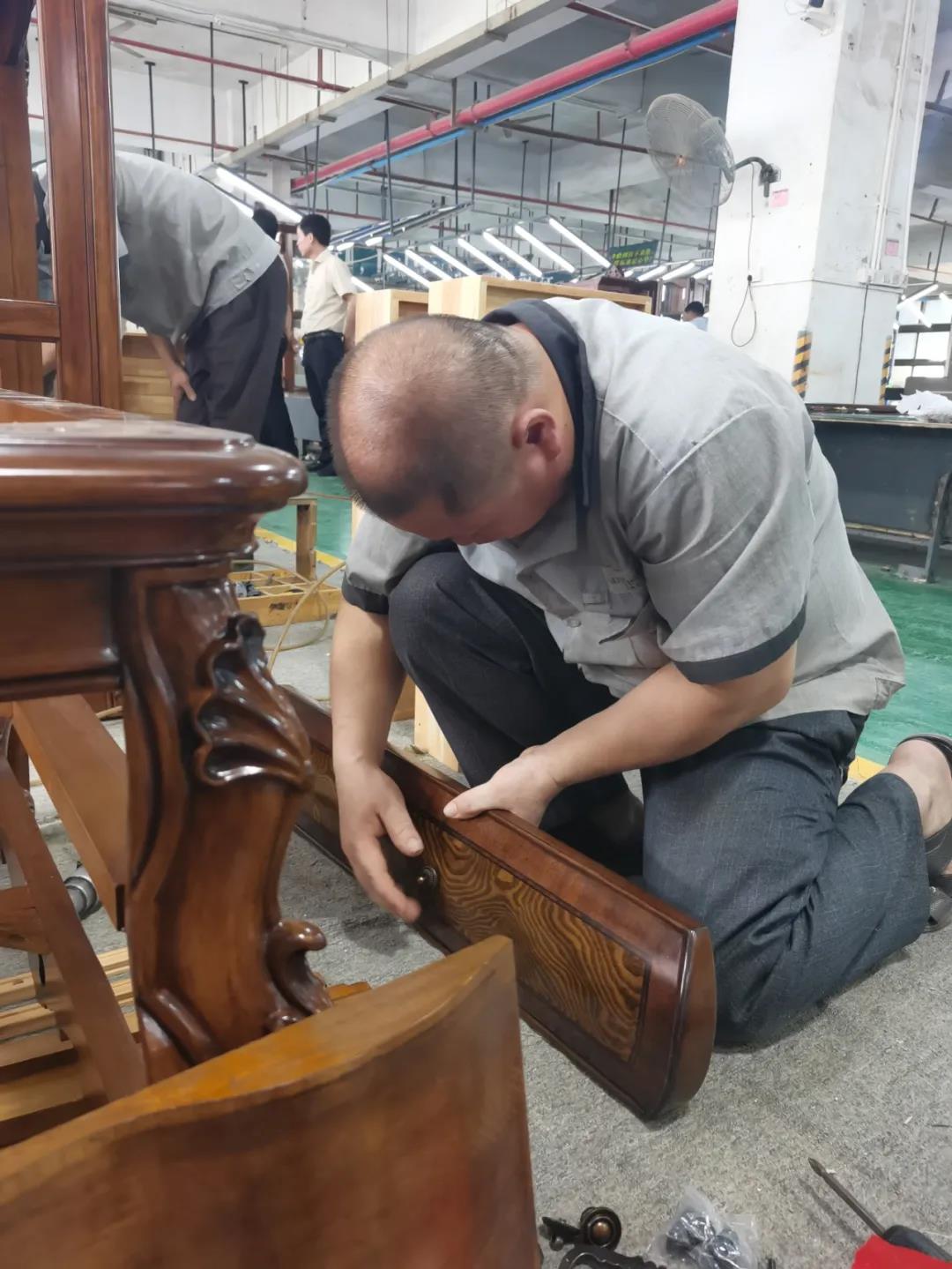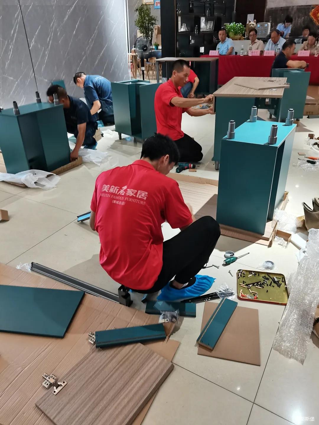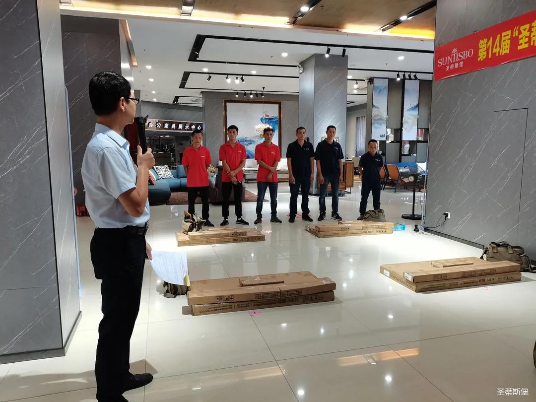 七月,一个热情似火的季节,一串串滑落的汗珠渲染着现场安静而紧张气氛。比赛现场,来自江门金海马商场和南城美新名家具商场的参赛选手各司其职,聚精会神地投入比赛,凭借着专业的技能,一丝不苟的将一个个小部件娴熟而准确无误地组装起来,打造高质量,细品质的家具产品。
